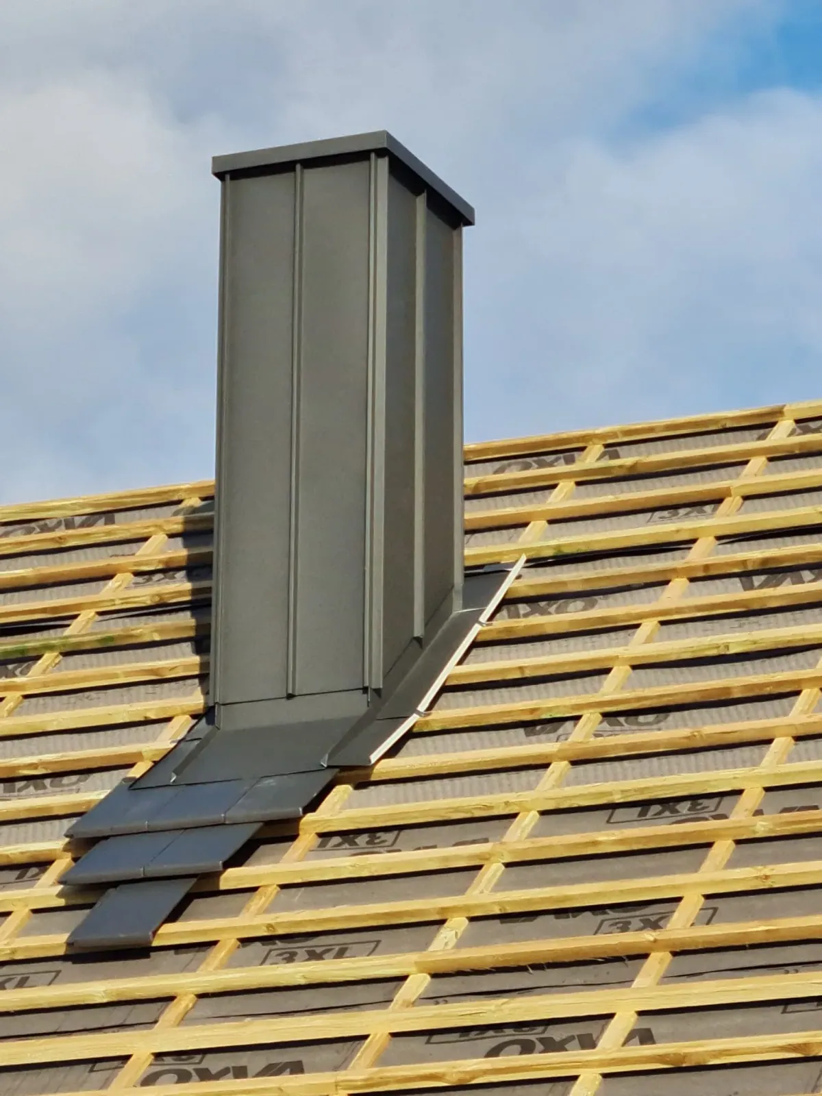Szczelne opierzenie komina Wrocław — Solidna obróbka blacharska wykonana w technologii na felc. Idealne rozwiązanie dla osób szukających trwałej ochrony dachu w regionie dolnośląskim. Darmowa wycena i pomiar u klienta.